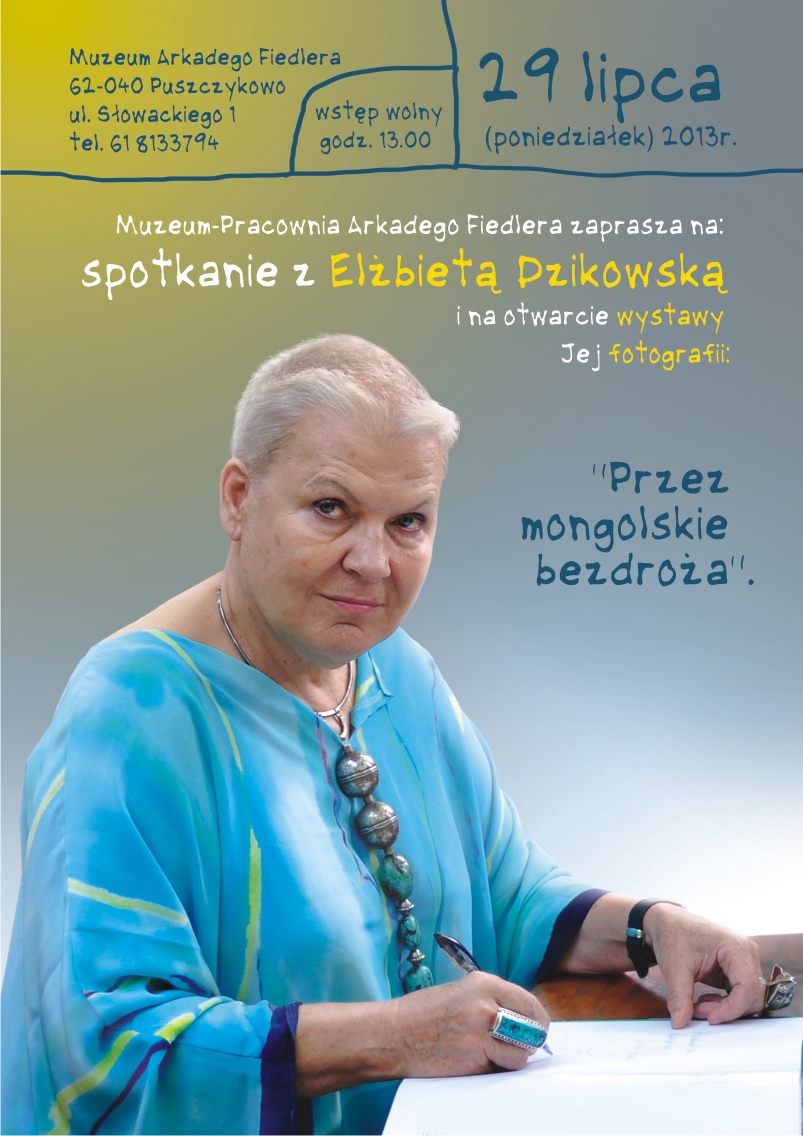 Serdecznie zapraszamy na spotkanie z Elżbietą Dzikowską w Muzeum 29 lipca (poniedziałek) g. 13.00. WSTĘP WOLNY.